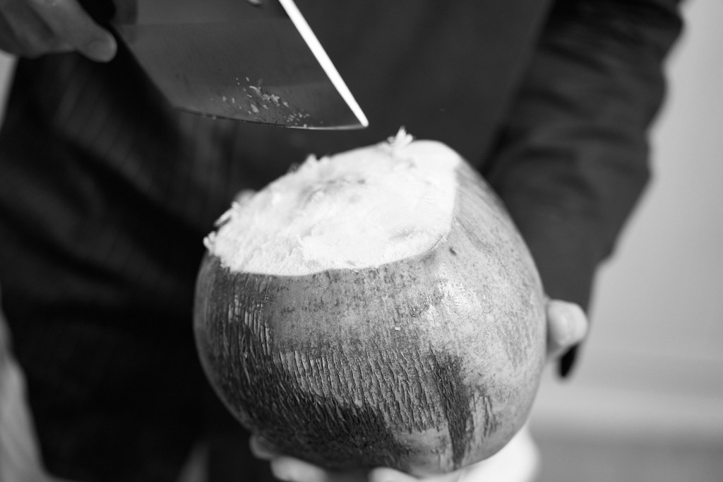 Vi was cutting the coconut open for its fresh juice. We don’t talk about bottled coconut juice here in Thailand. 🙊 (just kidding)